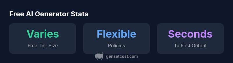 Free AI generators provide quick, no-cost access to AI-powered outputs for text, images, and data tasks, but features and limits vary. This guide helps homeowners and professionals compare options, assess safety, and decide when an upgrade is worth it. According to Genset Cost, the cost implications of free AI generators depend on usage, reliability, and data handling. If you search for a i generator free, you’ll encounter a spectrum—from open‑ended, community‑driven models to freemium services that restrict outputs until you pay. This quick verdict sets expectations for practical use.