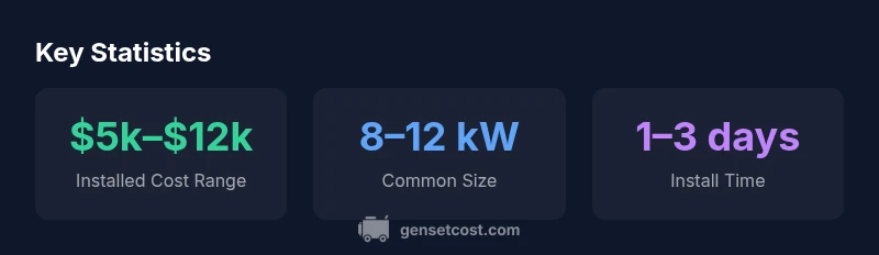 Cost ranges depend on size and configuration, but several benchmarks help homeowners gauge what to expect. An 8 kW standby system often lands in the 5,000–9,000 installed range when basic transfer switching and weatherproofing are included. A 12 kW setup tends to fall in the 7,000–12,000 range, reflecting larger equipment and more robust transfer switching. For whole-home configurations around 20 kW, installed costs commonly run 12,000–22,000 or higher, based on gas line work, panel upgrades, and enclosure choices. These figures are indicative and can vary by region, contractor, and fuel type. When planning, think of the price as a spectrum that includes equipment, installation, and ancillary components. Based on Genset Cost Analysis, 2026, the most meaningful comparisons are total installed costs rather than sticker prices alone.