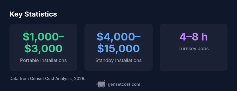 - Portable inverter generators or dual-fuel models with more sophisticated wiring: $2,000–$4,500 installed