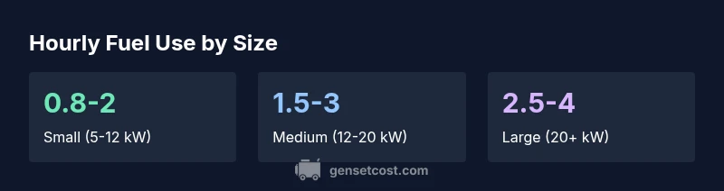For home standby units, expect roughly 0.8-4 gallons per hour depending on size and load. Use a tailored estimate based on your essential loads and chosen model.