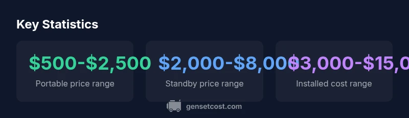 Prices for an electric generator vary by size, fuel type, and features. Portable models typically run about $500 to $2,500, while standby systems for whole-home backup commonly fall in the $2,000 to $8,000 range before installation. Installed costs, including transfer switches and permitting, can push total project price into roughly $3,000 to $15,000 depending on local codes and contractor rates. This overview reflects typical market ranges as of 2026, and is informed by Genset Cost Analysis, 2026.