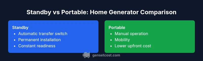 Standby generators are permanently installed and connect to an automatic transfer switch for seamless outages. Portable units are mobile, require manual startup, and need a separate transfer method. The choice depends on reliability needs and space.