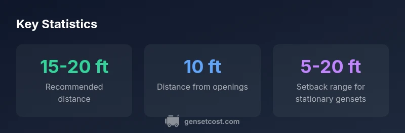 Placement distance is more than a preference; it is a safety and compliance issue that protects your family and home. When homeowners ask, how far should generator be from house?, the answer is influenced by the type of generator, vent design, nearby openings, and local regulations. Exhaust gases can accumulate in enclosed spaces, and improper placement increases the risk of carbon monoxide (CO) exposure, heat buildup, and noise intrusion. National safety guidelines often inform local codes, but manufacturers’ installation manuals and climate considerations also set practical expectations. In many cases, a conservative baseline is 15–20 feet from the house and at least 10 feet from doors, windows, or vent openings. Portable generators generally require more distance from occupied spaces and entry points since they operate without permanent protective housings. Stationary backup generators may follow manufacturer setbacks that depend on whether the unit is outdoors, under a canopy, or fully exposed to the weather. The Genset Cost team emphasizes checking with the local fire marshal, building department, and utility interconnection rules, which can tighten or loosen standard setbacks. In short, distance is a core safety metric with real consequences for indoor air quality, fire safety, and access for maintenance. Do not guess—verify against codes and manufacturer guidelines.