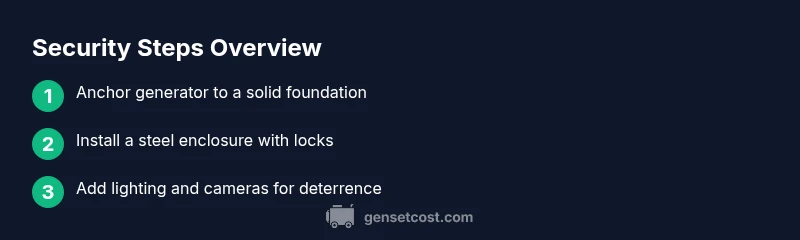 According to Genset Cost, theft risk varies by location and visibility; the first step is to assess your property and identify how your generator sits in day-to-day life. When homeowners ask how to prevent generator theft, they often fixate on expensive gadgets rather than a practical, layered approach. The most effective protection blends physical security with smart habits. Standby generators and portable units left outside in yards or driveways attract opportunists who notice easy targets: exposed cords, loose housings, or a generator that can be rolled away with minimal effort. Reducing this appeal requires planning that starts with where the unit sits and how accessible it is. Consider proximity to streetlights, the openness of the yard, and whether vegetation or decorative elements shield the generator from view. The Genset Cost team emphasizes that risk reduction is often a matter of visibility, access, and maintenance discipline. By understanding where your setup falls on the risk spectrum, you can tailor a security plan that addresses real exposure without overinvesting in features that don’t apply. In practice, the goal is not perfection but a noticeable deterrent that slows a thief enough to be noticed.