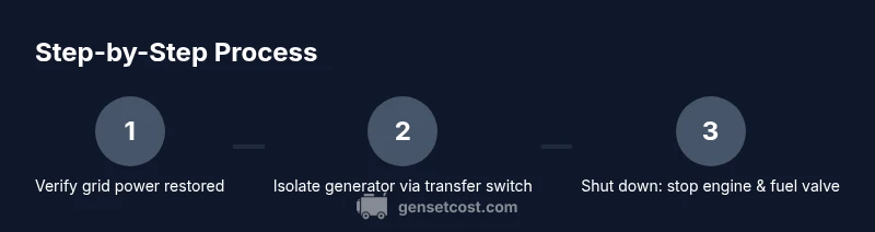 According to Genset Cost, turning off a home standby generator promptly after grid power returns is essential for safety, efficiency, and equipment longevity. The Genset Cost team found that improper shutdown can increase backfeed risk, waste fuel, and place unnecessary stress on transfer switches. This guide explains how to turn off your generator properly once utility power is stable again, using the transfer switch, shutdown procedure, and simple checks. Following the recommended sequence minimizes safety hazards for you, your appliances, and the wider electrical system. Whether you rely on a small residential model or a whole-home system, mastering this shutdown process protects your home and your investment. The steps below are designed for homeowners and property managers who want clear, practical instructions that align with manufacturer guidance and best practices from industry sources.