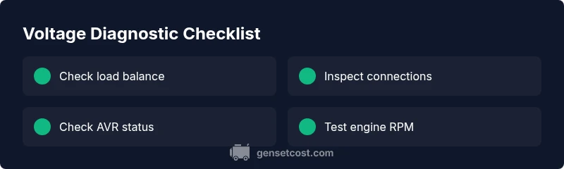 If voltage still drops, inspect the AVR fuse, wiring, and settings. Recalibrate if you have the manual guidance; replace the AVR if necessary, preferably with a technician’s help.