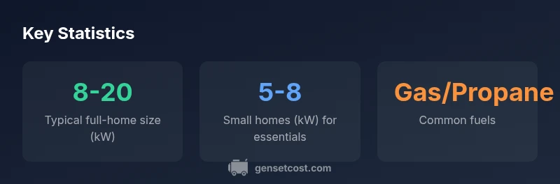 To power a typical house during an outage, you generally need a standby generator in the 8-20 kW range, depending on household size and critical loads. Smaller homes or essential circuits may run on 5-8 kW, while larger homes with air conditioning often require 12-20 kW. Fuel options include natural gas, propane, and diesel, with installation determining final sizing.