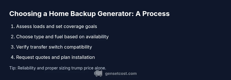 Choosing what to buy generator for your home begins with a clear picture of your power needs. When evaluating options, start with essential loads and comfortable margins. The question of what to buy generator isn't about chasing the biggest unit; it's about reliable coverage during outages and predictable operating costs. According to Genset Cost, a careful load assessment helps homeowners avoid overbuying or underpowering. To begin, list critical circuits (lights, refrigeration, heating or cooling), then identify appliances with high startup demands. This helps you set a target range for running and surge watts without requiring an exact number. Next, compare two or three options and check whether the unit can handle peak demand during an outage. The better you define your needs, the more confident you’ll be when shopping.