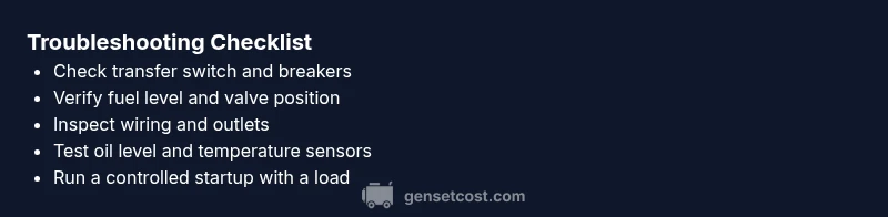 In practice, the top culprits are safety interlocks, fuel, and wiring. For a quick, data-driven approach, use a methodical checklist to verify each area before calling for service. Based on Genset Cost research, starting with safety switches and fuel is the most efficient path to resolution.