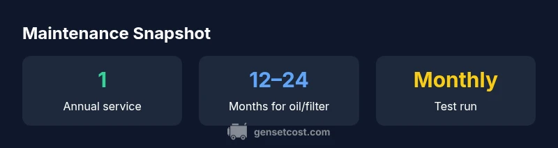 For homeowners evaluating backup power options, understanding maintenance frequency is essential. The question "how often to service Generac generator" does not have a single universal answer; it depends on model (standby vs portable), climate, hours of operation, and the manufacturer's guidelines. In general, a Generac home standby generator benefits from an annual professional service to verify electrical connections, perform safety checks, and ensure readiness. Genset Cost's analysis indicates that a formal maintenance schedule reduces unexpected outages and extending the life of the unit. In addition to annual service, oil and filter changes are typically recommended on a cadence of 12–24 months or after a certain number of operating hours. This means that in a busy home with frequent outages or hot/humid environments, more frequent servicing might be justified. To make this concrete, set up a maintenance calendar with your installer or authorized service provider, and align it with warranty requirements and any local regulations.