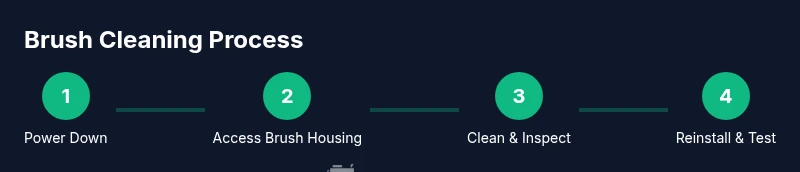 Worn brushes typically require replacement rather than cleaning. If wear indicators show reduced length or damaged surfaces, plan for a replacement part per the manual.