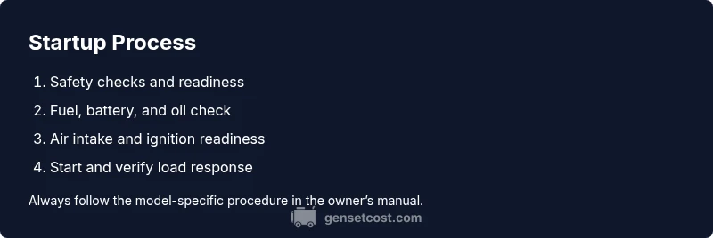 A cautious, repeatable process helps reduce starting surprises. Before you begin, confirm you have the owner’s manual, safety gear, and the necessary tools. Do a quick visual scan for leaks, loose panels, or obstructions. Validate fuel freshness, battery charge, oil level, air filter condition, and overall unit integrity. If your model includes a choke, ensure you understand the correct starting position. For models with an automatic transfer switch, verify the switch position and status indicators. When you’re ready, proceed with the official starting procedure and listen for normal engine sound, steady RPMs, and proper load response.