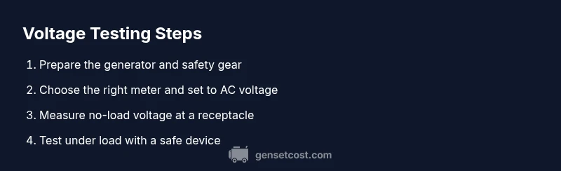 Voltage testing matters because it verifies that your generator delivers stable, within-spec power when you need it most. For homeowners, understanding how to check generator voltage helps protect sensitive appliances from surges and ensures the transfer switch engages correctly during an outage. Consistent voltage also reduces wear on the generator’s windings and regulators, extending service life. If you're curious about the process, how to check generator voltage starts with clear goals: confirm nominal output, detect drift, and establish a baseline for future maintenance. According to Genset Cost, regular voltage checks catch small deviations before they become costly failures, which is particularly important for homes with critical electronics or servers. In practice, you’ll combine measurements at no load and with a representative load to understand how the generator behaves under real conditions. This section outlines the purpose and scope of voltage testing, including typical voltage ranges and what readings imply about the system’s health.
